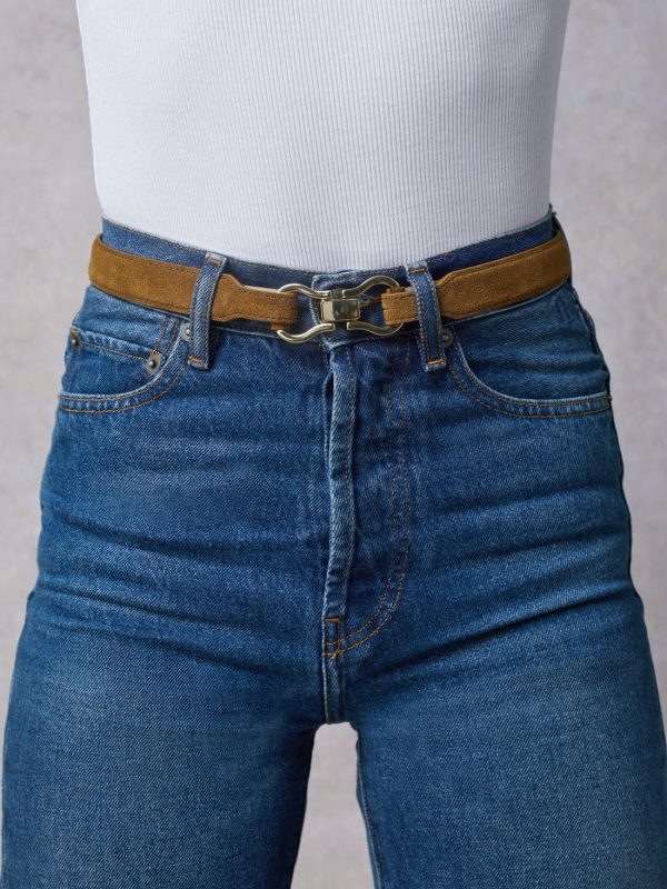 Double buckle belt in suede leather.