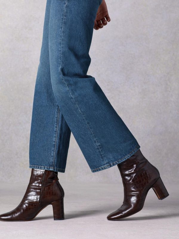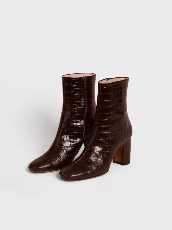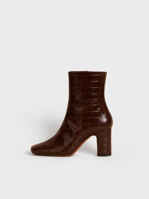 Croc-effect leather ankle boots.