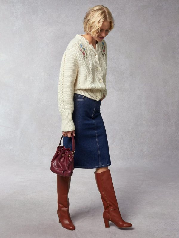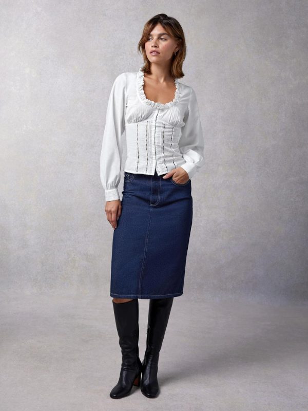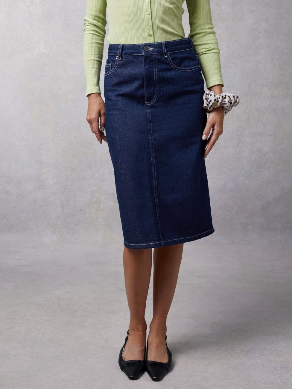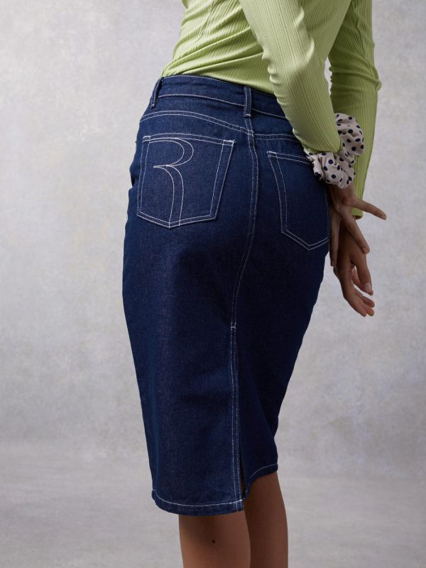 High-waisted pencil denim skirt.