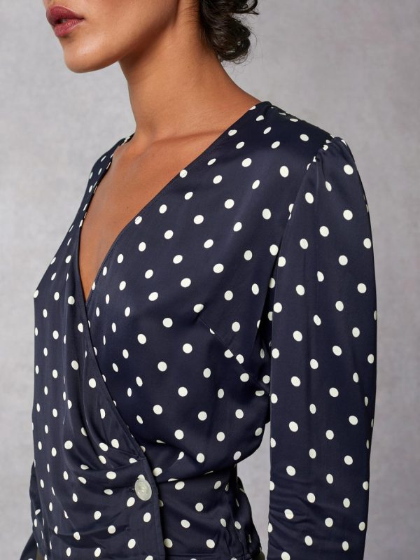 Navy and white polka dot print